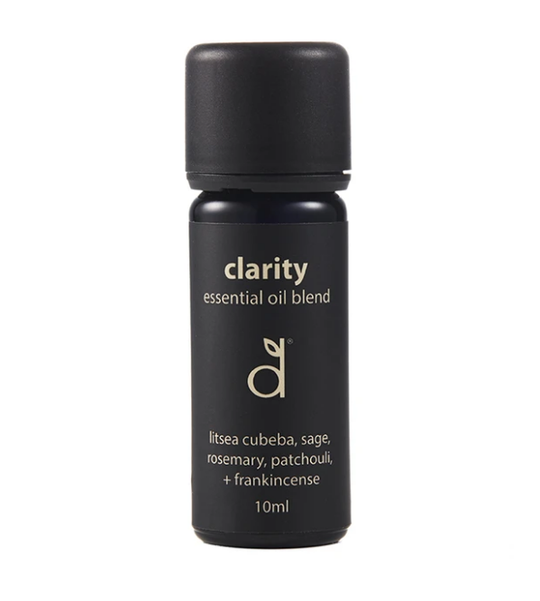 - clarity blend - Fresh and vibrant, our clarity essential oil blend helps with focus and concentration. Litsea cubeba, also known as may chang, has a lemony citrus scent which blends beautifully with rosemary, sage, patchouli and frankincense.