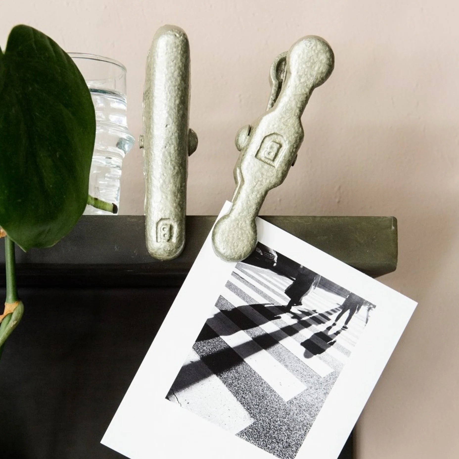 Inspired by an old fashioned car battery clamp, this strong clip will hold your pictures, grocery list or receipts. The hole on top makes it possible to screw it to the wall. The colour is custom hammered paint for Brût Homeware. Colour is Bold Green.